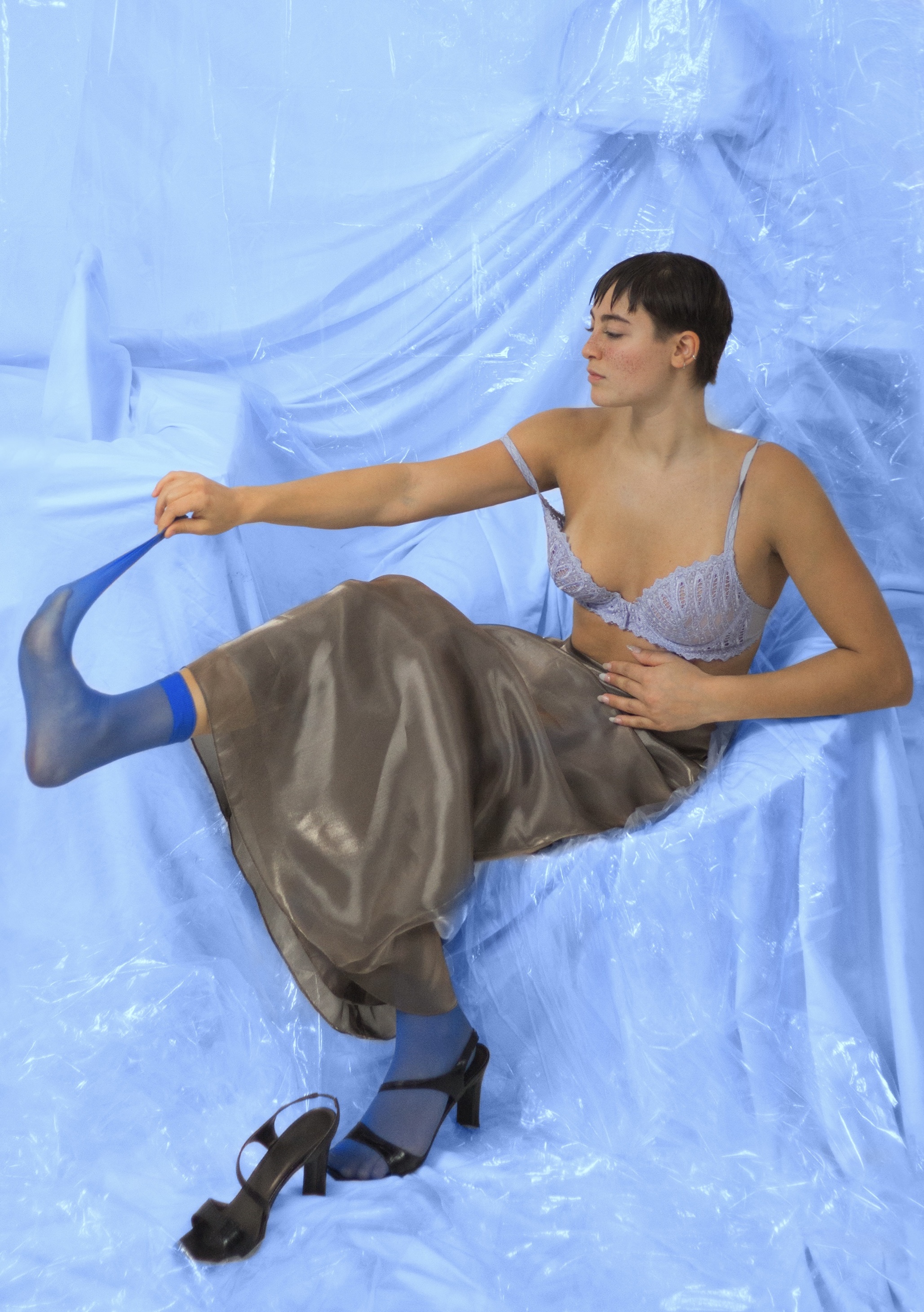 This editorial was the final project done for Muse Magazine by Maya. The climax of her role as Head of Editorials, this shoot focused on the way we use our appearances to metamorphose.Over the course of 5 days, with the collaboration of a hair stylist, and photographer, Maya underwent 5 hair cuts; from long tresses to a smooth buzz, each version is unrecognizable. Painting the image of ourselves as grown up barbie dolls, who says we have to stop playing with them.
